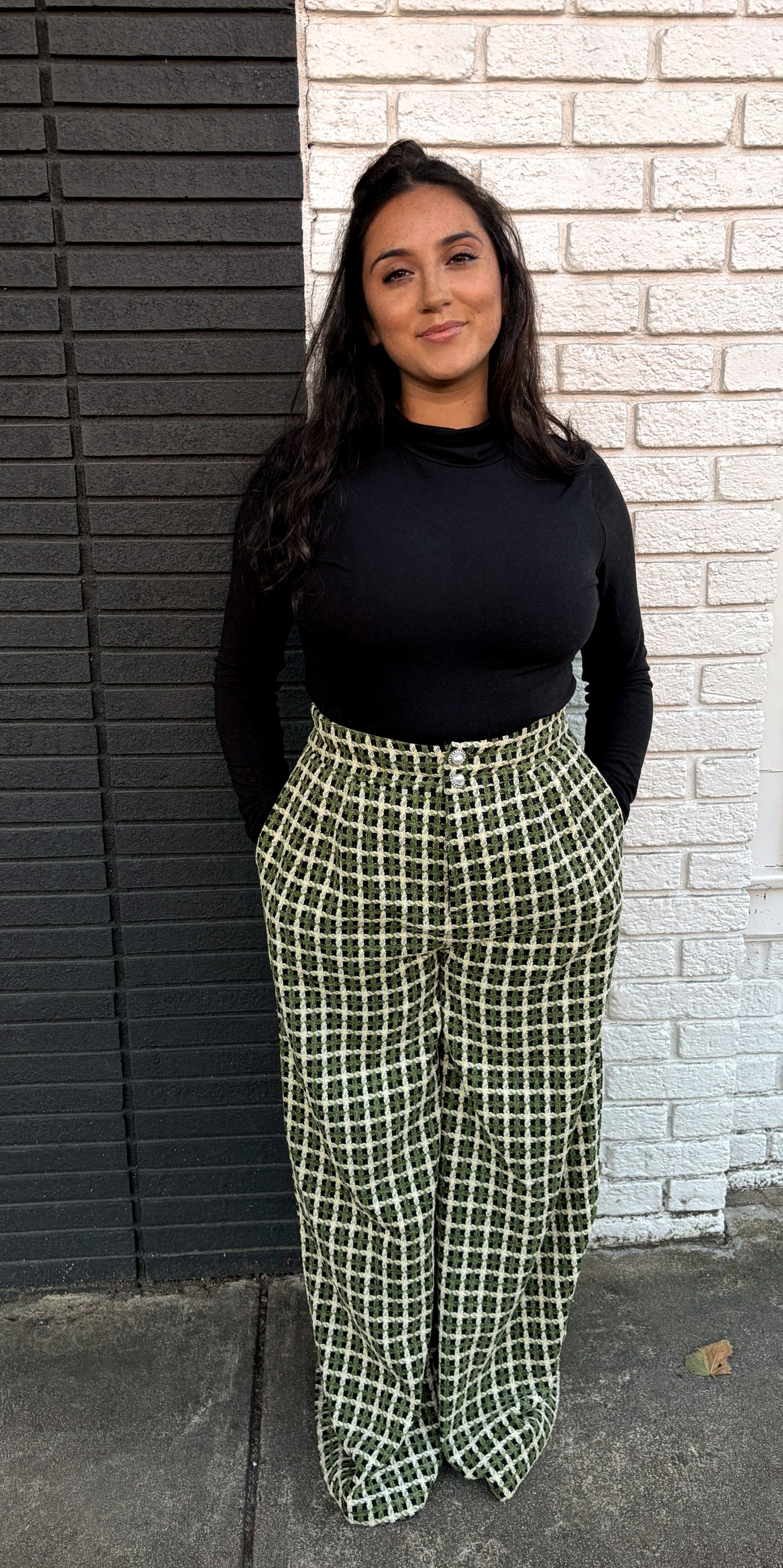The Noel Tweed Pants feature a sophisticated tweed pattern and elegant pearl button detail. Perfect for a polished and refined look, these pants add a touch of luxury to any outfit. Elevate your wardrobe with these expertly crafted pants.